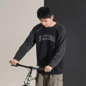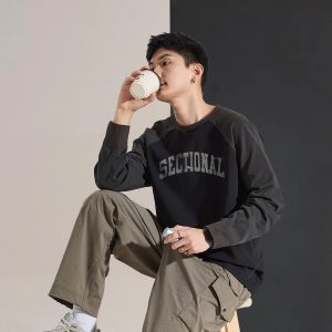 Long-sleeved T-shirt Men’s Autumn Men’s Long-sleeved T-shirt Top Men’s Round Neck Front Chest Text Printed Raglan Sleeve T-shirt