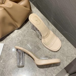 Women’s spring and summer new style transparent design crystal sandals for small people, high heels and slippers for outer wear